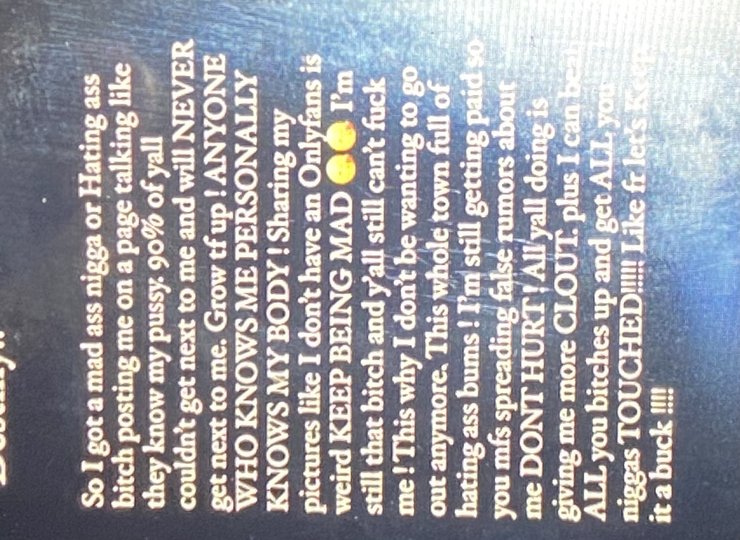Open file(407.06 KB, 1179x1487, IMG_0033.jpeg) {{{"Any ch3yanne ry@ns fat titty winz?" | renderPostMessage 18526}}} |